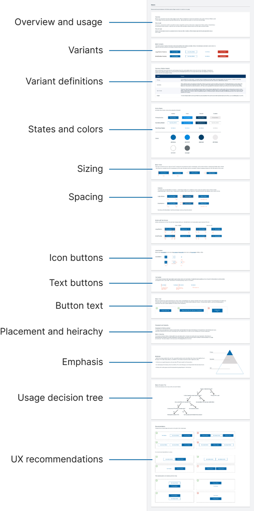 Design specs - spacing, color, typography, states, and variants