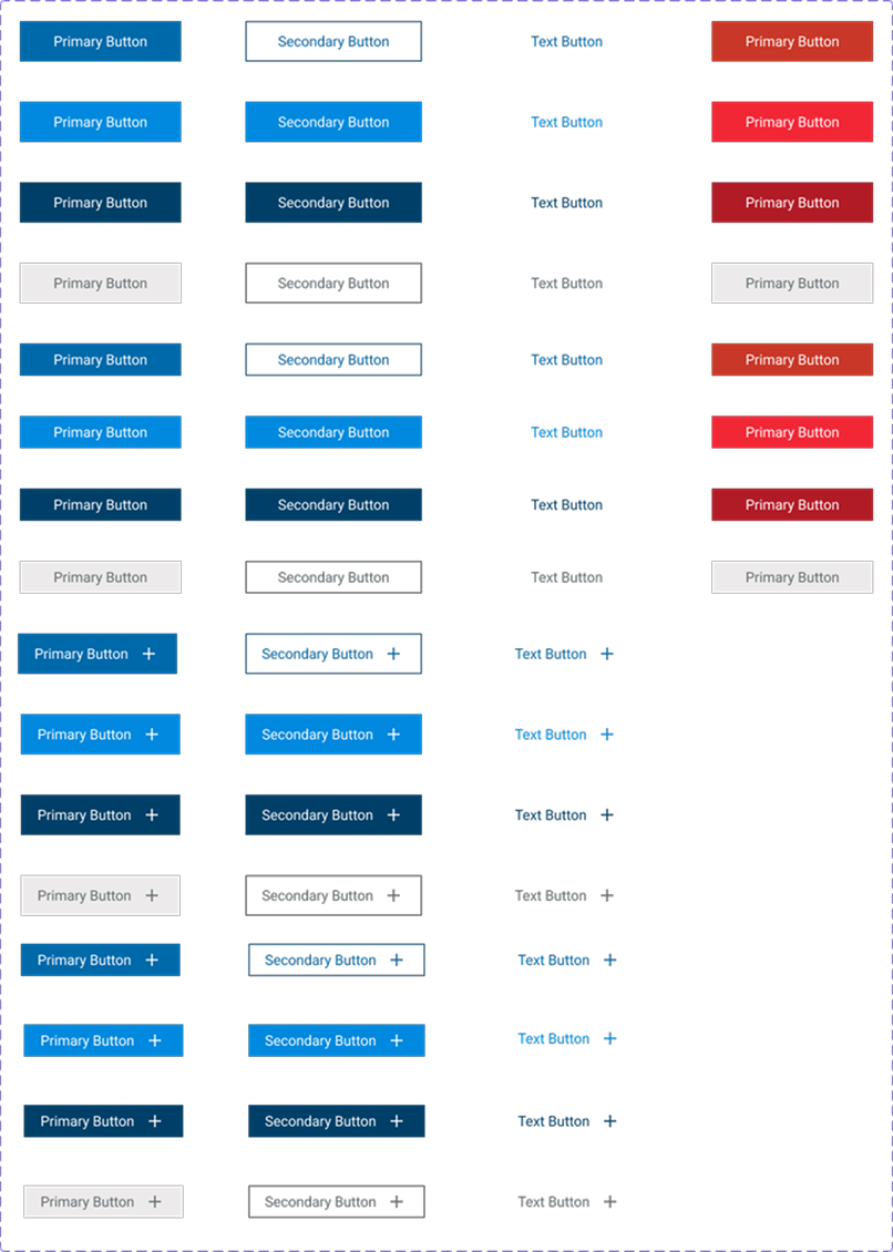 Examples of primary, secondary, text and danger button variants